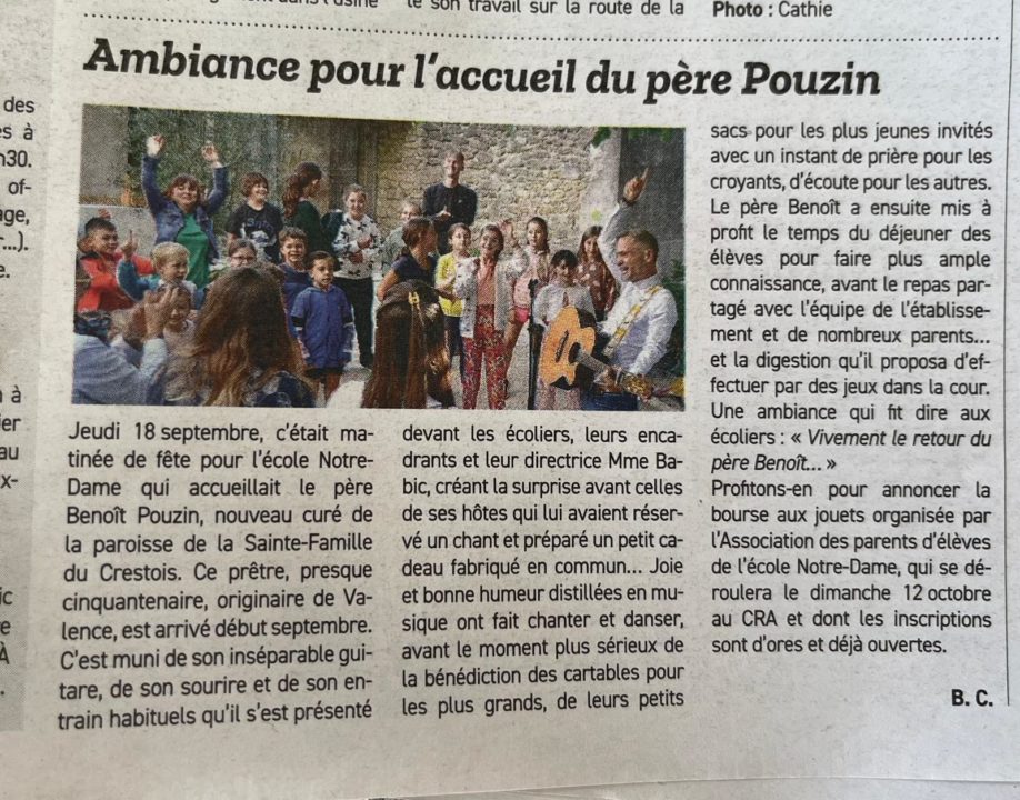 /dans CE / CM, Maternelles / CP /par Ecole Notre Dame de Grâne2025 2026 : RENTREE des CLASSES pour tous le lundi 1er septembre 2025 , avec la traditionnelle collation dès 8h30. Bienvenue à tous ! Nos effectifs sont en baisse suivant le courant démographique . Cela nous permet de suivre chacun au plus près de ses besoins et permet à tous d’apprendre et s’épanouir dans […]