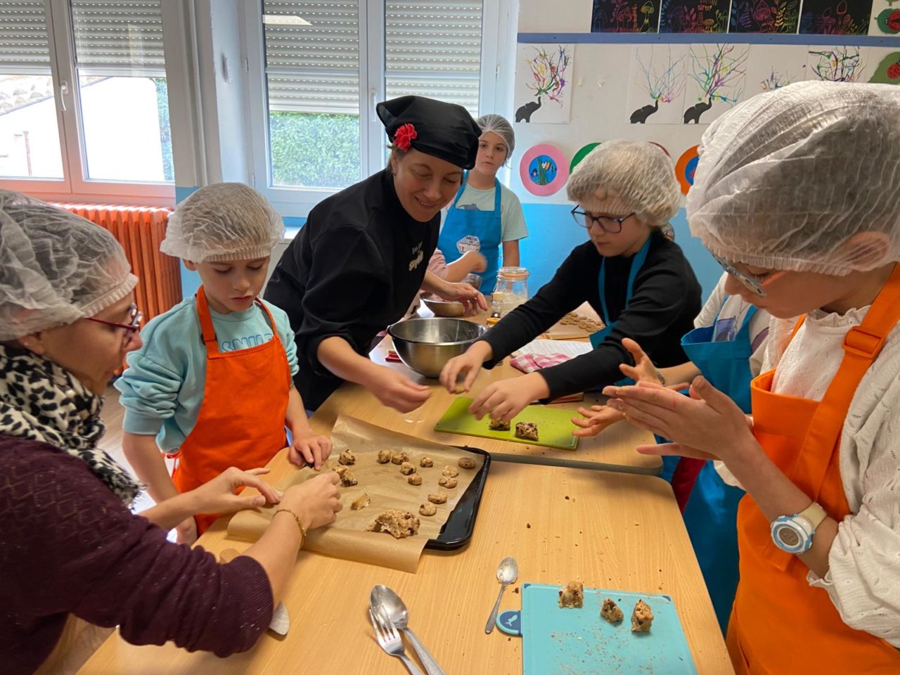 Mardi 14 octobre c était aussi des temps de RENCONTRE AVEC CHEFFE SOPHIE venue cuisiner avec chaque classe ..